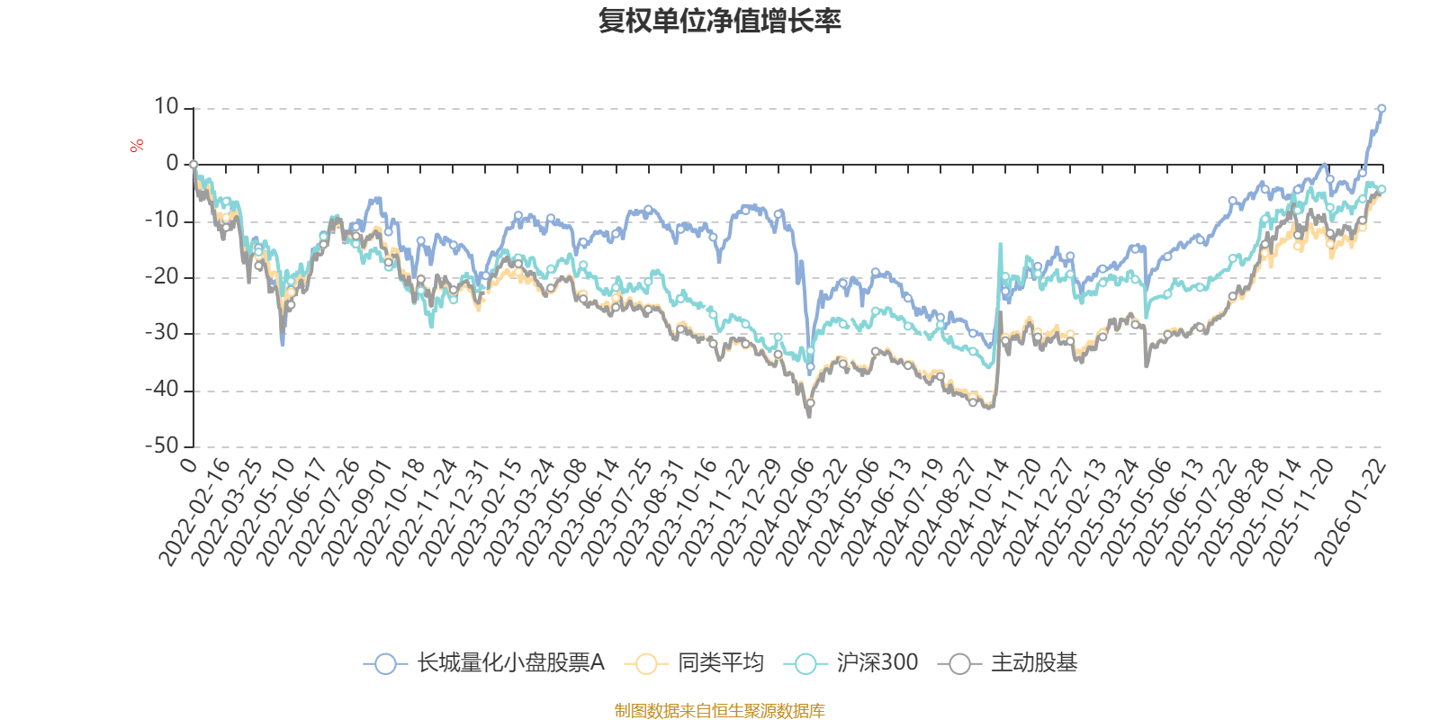 截至1月22日,长城量化小盘股票A近三个月复权单位净值增长率为13.34%,位于同类可比基金41/121;近半年复权单位净值增长率为17.43%,位于同类可比基金77/121;近一年复权单位净值增长率为38.51%,位于同类可比基金62/119;近三年复权单位净值增长率为27.76%,位于同类可比基金34/89。